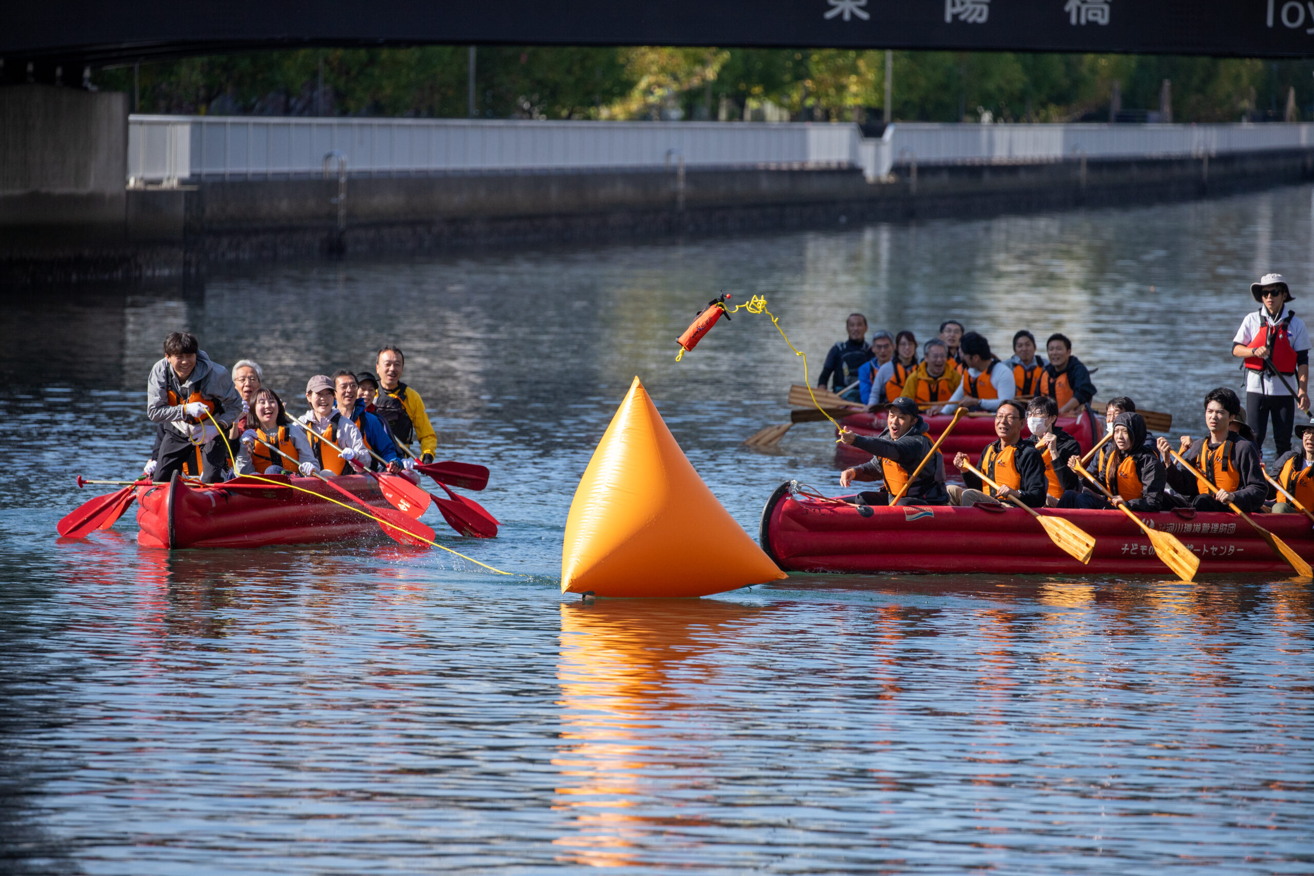 2025/11/7、東陽・新砂地区運河ルネサンス協議会の取り組みの一つ「防災避難ボートE-BOATで団体対抗防訓練レース 第5回汐浜カップ(通称:E-BOATレース)」を開催しました!